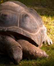 Der weitere Rundgang führt uns zu den Robben. Im Prospekt des Zoos heißt es: "Die Heidelberger Mähnenrobbengruppe ist eine der erfolgreichsten Zuchtgruppen in einem deutschen Zoo. Die mächtigen Meeressäuger, deren Verbreitungsgebiet sich entlang der Pazifikküste Südamerikas von Peru bis Feuerland und entlang der Atlantikküste bis nach Südbrasilien erstreckt, gelten im Gegensatz zu den zierlicheren Kalifornischen Seelöwen als aggressiver und schwierig im Umgang.". Zweimal am Tag, zur Fütterungszeit können die Zoobesucher bestaunen, welche imposante Kunststücke die Mähnenrobben inzwischen beherrschen. Imposante Seychellen-Riesenschildkröten, zwei von ihnen sind mit ihren 80 Jahren und 250 Kilo die ältesten Zoobewohner haben ihr Gehege nebenan, genauso wie das Gehege der Kamele. Dort hat es Nachwuchs gegeben.