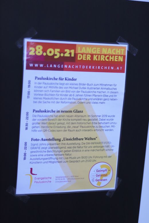 Fotografin Sigrid Johns zeigt im Rahmen der langen Nacht der Kirchen 2021 in der Evangelischen Pauluskirche im 3.Bezirk in Wien, wunderschöne Infrarot Aufnahmen mit ungewöhnlichen Belichtungen in der Natur.