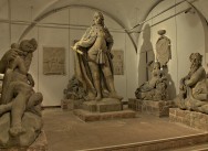 Im Gewölbekeller des Museums sind Grabplatten und Gewölbeschlusssteine als Zeitzeugen zu sehen. Das wichtigste Exponat ist die zum Teil erhaltene Grabplatte von Pfalzgraf Ludwig II. Die meisten Ausstellungsstücke stammen aus dem Kreuzgang des früheren Augustinerklosters, so die Grabplatte eines Augustinermönchs, die Grabplatte des Priors des Mönchsordens Johannes Molitor. Bei den Ausgrabungen wurden auch Grabplatten von Bürgerfamilien einschließlich Kindern gefunden. Gut erhalten sind Gewölbeschlusssteine mit dem kurpfälzischen Wappen und mit dem Reichsadler. Am heutigen Karlsplatz in Heidelberg stand früher ein Franziskanerkloster. Dort ließ sich Friedrich der Siegreiche in einem Doppeldeckergrab beisetzen.