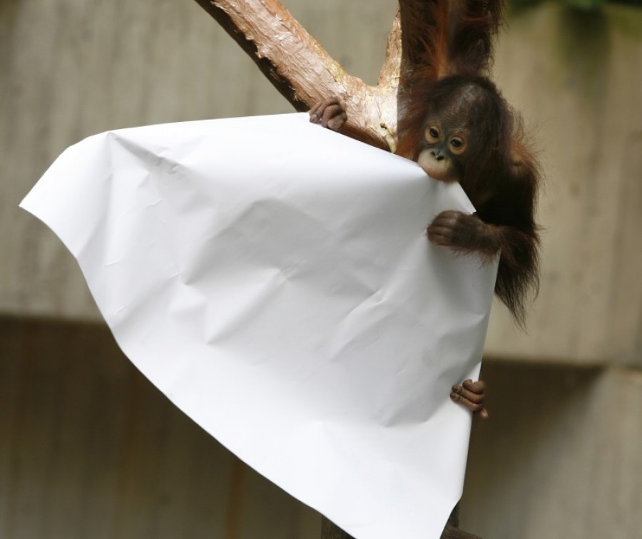 Alles schon mal gehört oder gelesen? Stimmt, aber der Clou sind die Designer: keine Modeschul-Absolventen, keine Jungtalente weltbekannter Modehäuser, keine Glitzerstars und keine Koksnasen. Nein, Designer sind hier ausschließlich Affen. Richtig lebendige Affen, Orang-Utans um genau zu sein. Sie entwerfen mit ihren Fingern oder mit Pinseln extrem spannende Werke auf Leinwand. Brauchen sich dabei selbst vor Gerhard Richter und seiner weltberühmten Wischtechnik nicht zu verstecken. Es soll sogar manche Professoren an der UDK ( Universität der Künste, Berlin) geben, die froh wären, manche ihrer Studenten hätten wenigstens ein paar Prozent Talent dieser Orang-Utans. Fairerweise muss aber erwähnt werden, dass Malen in Dschungel-Auffangstationen und Zoos auch ungemein inspirierend ist.