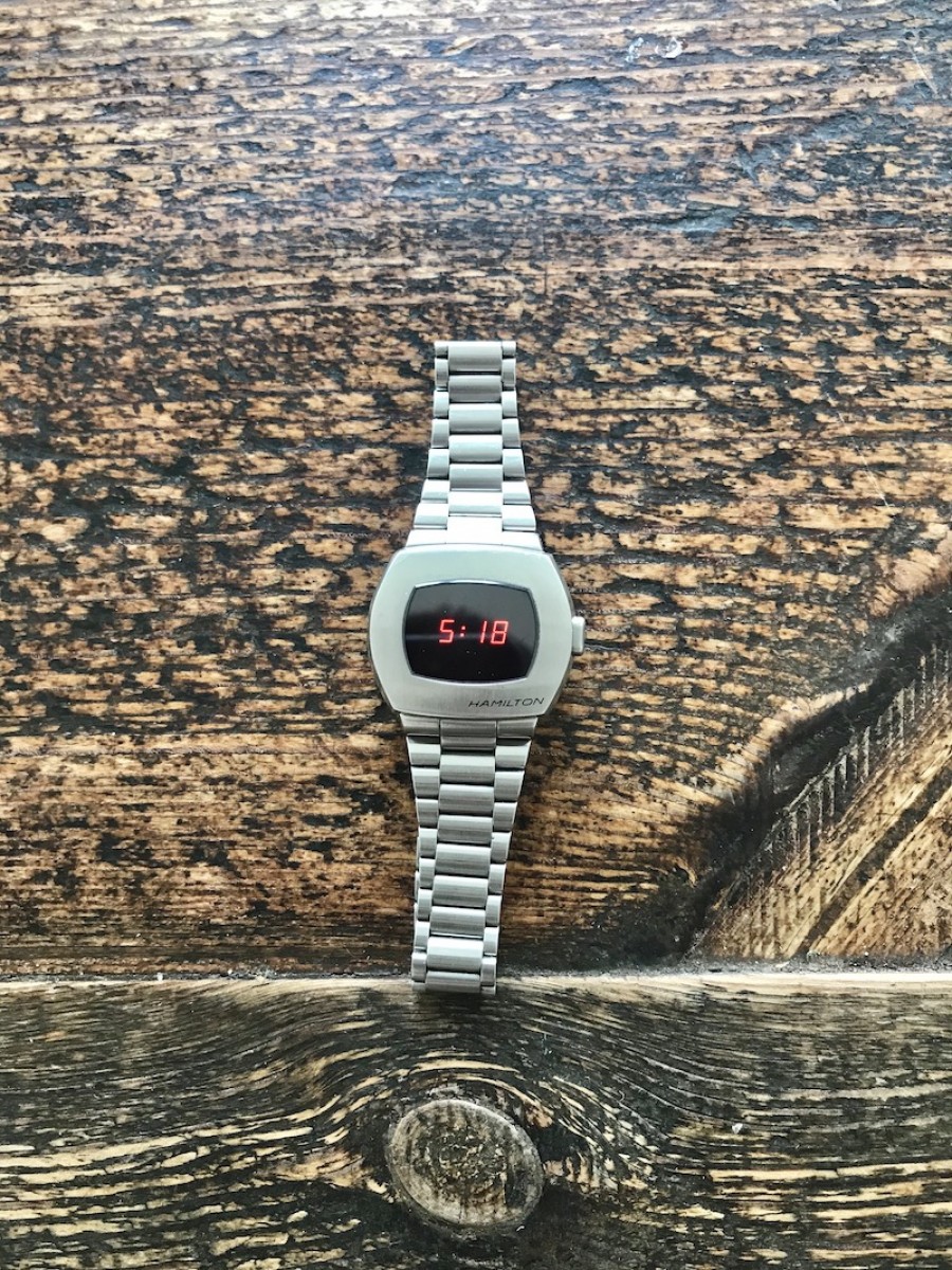 Zunächst die Ikone, der Traum vieler UhrenliebhaberInnen, eine Rolex Sea Dweller Red, 43 mm Durchmesser, 70 Stunden Gangreserve, Edelstahl und Weissgold Elemente, Tauchtiefe 1200m, zum erlauchten Preis von 10.850 Euro, sofern im Rolexladen erhältlich. Auf dem grauen Markt und bei seriösen Internet Portalen wie Chrono24 durchaus erhältlich für 13.000-15.500 Euro. Dann ein weiteres Lieblingsstück, die aus den 1970 Jahren stammende Omega Speedmaster Professionel Mark II, 41 mm Durchmesser, Handaufzug, Edelstahl, 50 m Waterproof, erhältlich beim Händler Ihres Vertrauens oder bei Watchmaster und Chrono24. Kaufpreis ca.1800-2000 Euro. Zum Schluss noch eine weitere Ikone aus den 1970 Jahren, in diesem Jahr neu aufgelegt von Hamilton ( zur Swatch Group gehörend). Sie war die erste digitale Quarzuhr-Armbanduhr der Welt!.