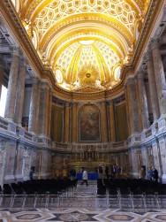 Wertvoll ist die große Treppe, die zu Vanvitellis höchstem Niveau führt: 116 Stufen, geschmückt mit zwei großen weißen Löwen aus Marmor, während drei Statuen an der gegenüberliegenden Wand stehen: Majestät, Verdienst, Wahrheit. Am Ende der Treppe führt zu den königlichen Wohnungen und der Cappella Palatina, die am meisten erinnernde Umgebung des Modells Versailles. Der drei Kilometer lange Park mit einer Fläche von 120 Hektar verfügt über zahlreiche Becken mit verschiedenen Fischarten und Fontänen wie der Margherita-Brunnen. Es hat eine Fläche von 47.000 Quadratmetern, fünf Etagen und vier Innenhöfe und 1790 Fenster.